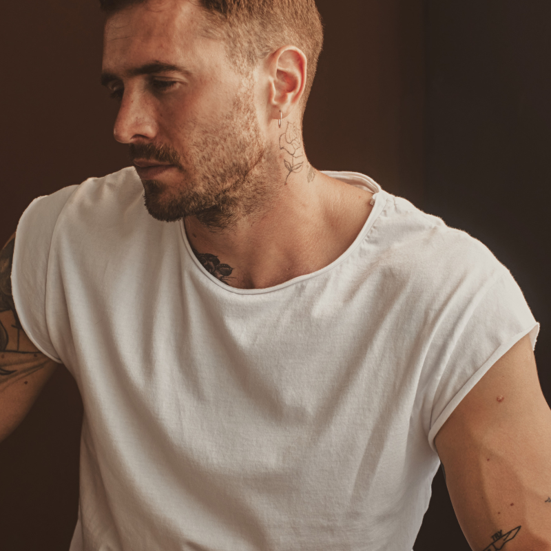 This repurposed upcycled t-shirt has been transformed with distinct characteristics. Crafted from exquisite Supima Cotton, it no longer resembles a typical jersey tee. The conventional crew-neck t-shirt has been modified to exude a bold, athletic vibe, thanks to its raw edge neckline and sleeves. It boasts a more exposed neckline and shortened capped short sleeves. The raw edge tee is ideal for those looking to add a cheeky, under-the-radar tee into their rotation.
